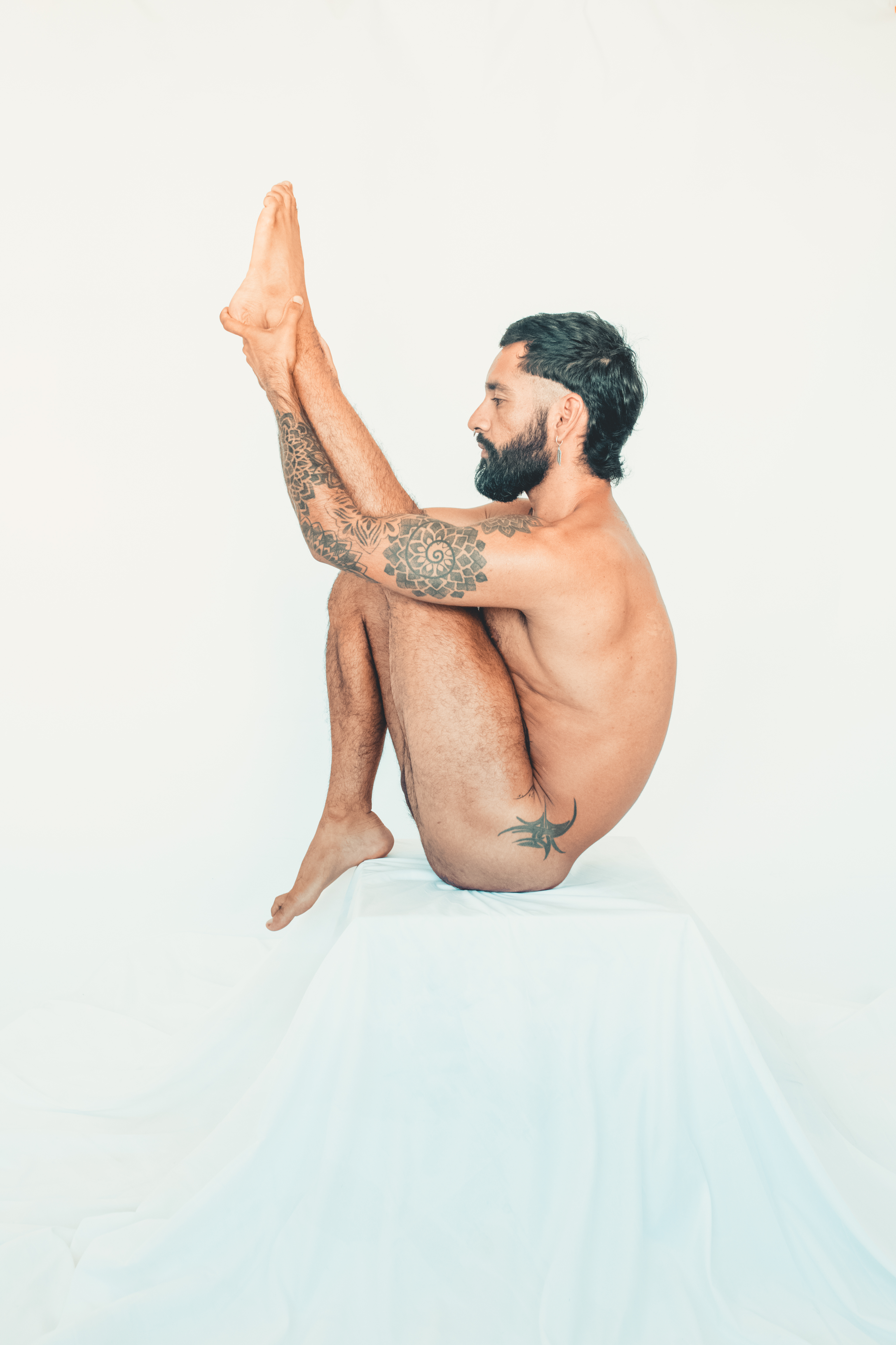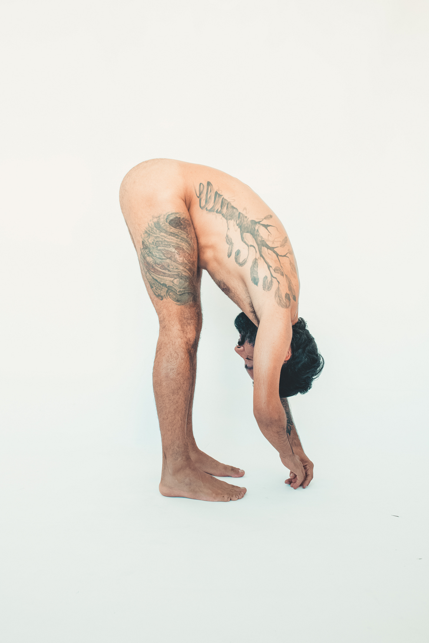 What surprised me wasn’t the nudity. It was the kindness of it. The way the body softens when it doesn’t have to perform. How gentle and flexible we become when there’s nothing constricting us, physically or mentally. His limbs moved like they were remembering something old, something natural. He folded in half, balanced upside-down, twisted, extended… not to show off, but because it felt good. Because it felt true.